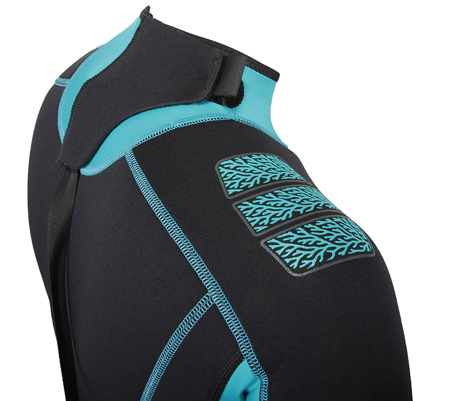 - Более эластичный неопрен на рукавах, плечах и подмышками.