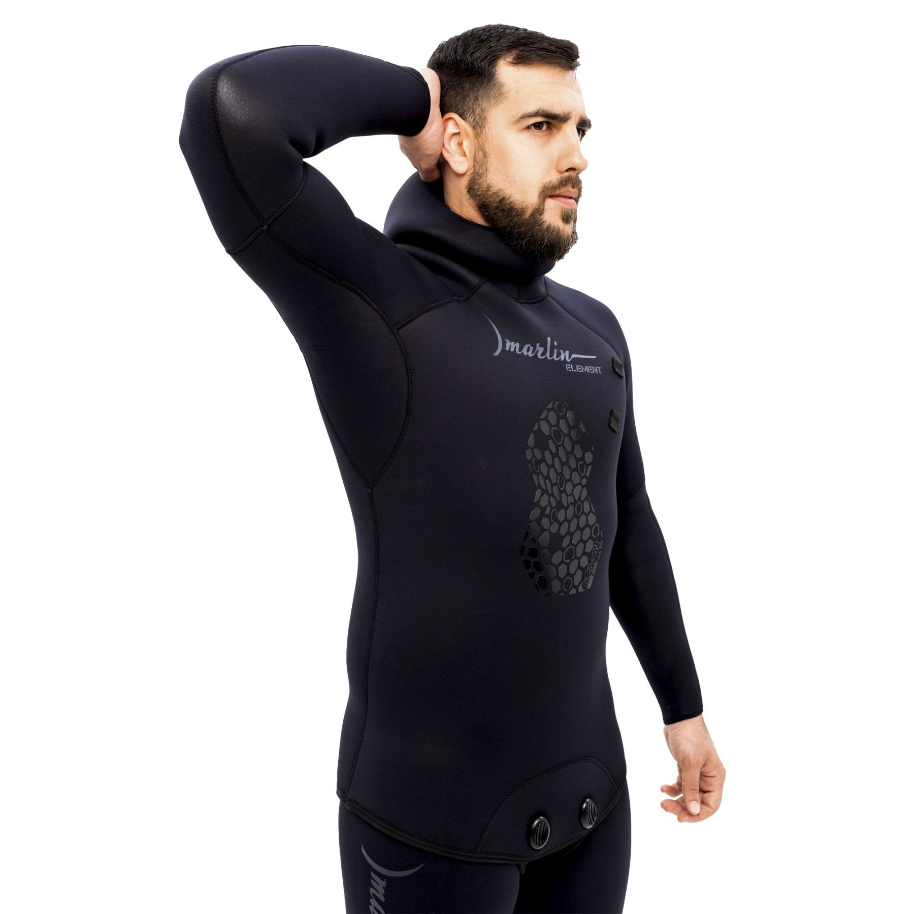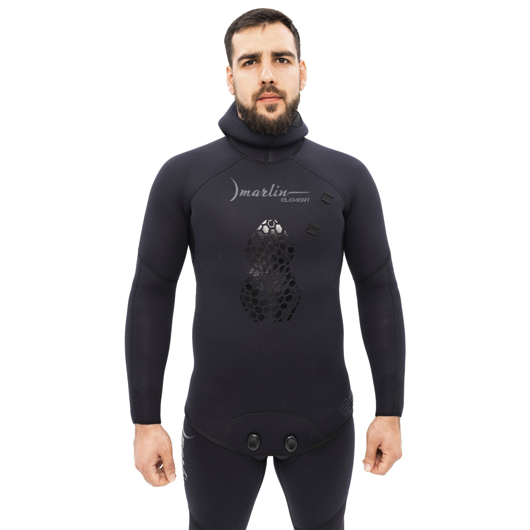 Гидрокостюм Marlin ELEMENT 3 мм (Марлин ЭЛЕМЕНТ) — это доступный гидрокостюм для подводной охоты, состоящий из куртки с интегрированным шлемом и штанов с высокой талией. Внешнее покрытие – нейлон, внутри – открытая пора (надевается с применением мыльного раствора).