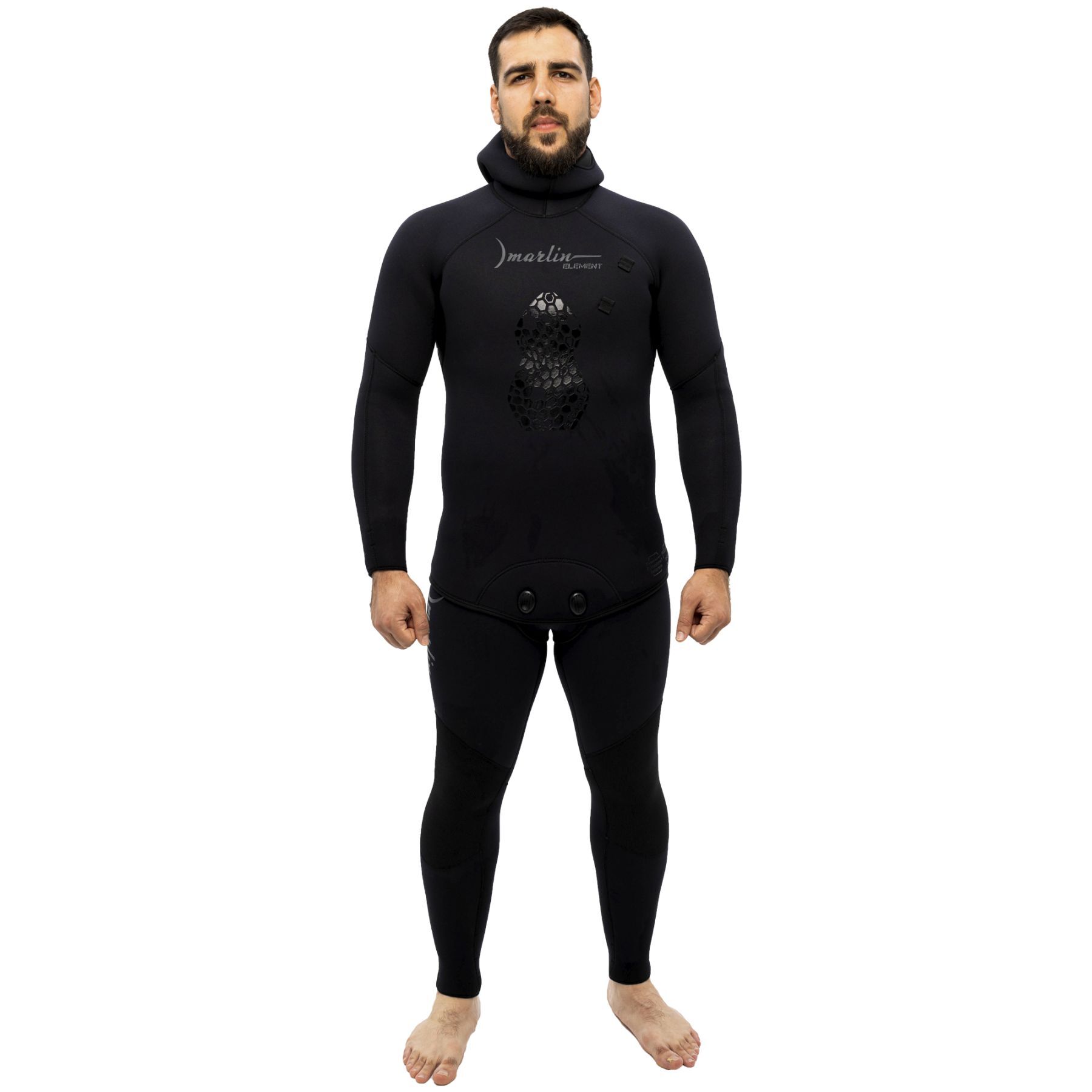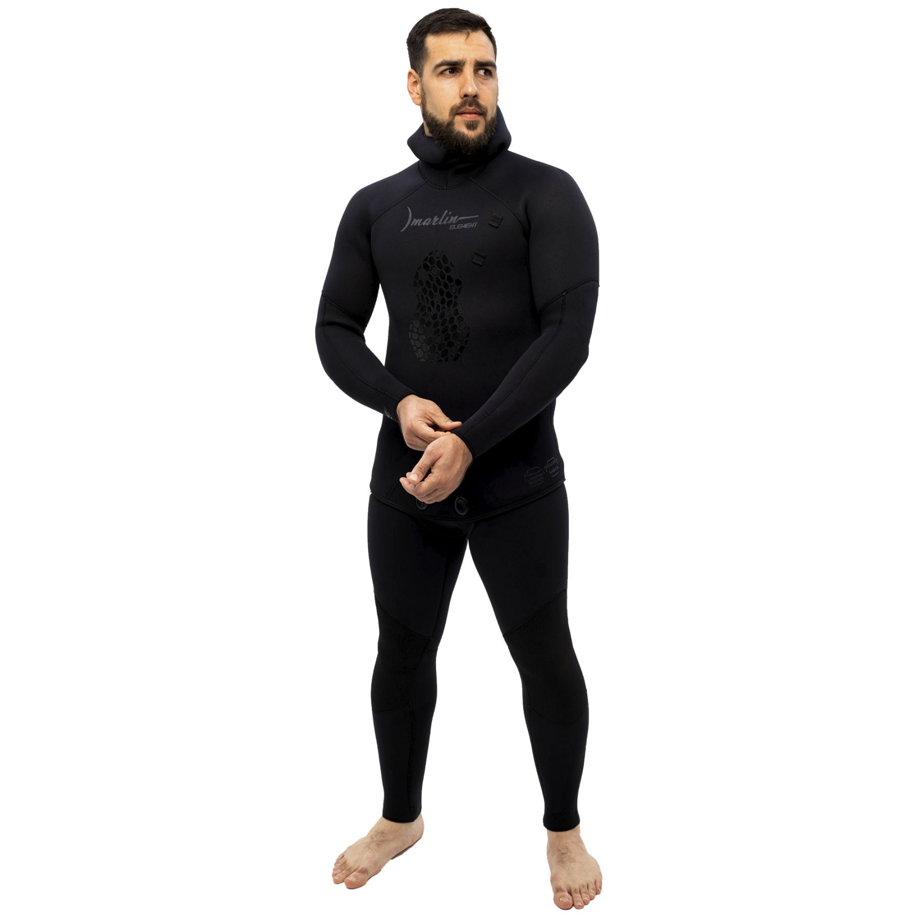 Гидрокостюм Marlin ELEMENT 5 мм (Марлин ЭЛЕМЕНТ) — это доступный гидрокостюм для подводной охоты, состоящий из куртки с интегрированным шлемом и штанов с высокой талией. Внешнее покрытие – нейлон, внутри – открытая пора (надевается с применением мыльного раствора).