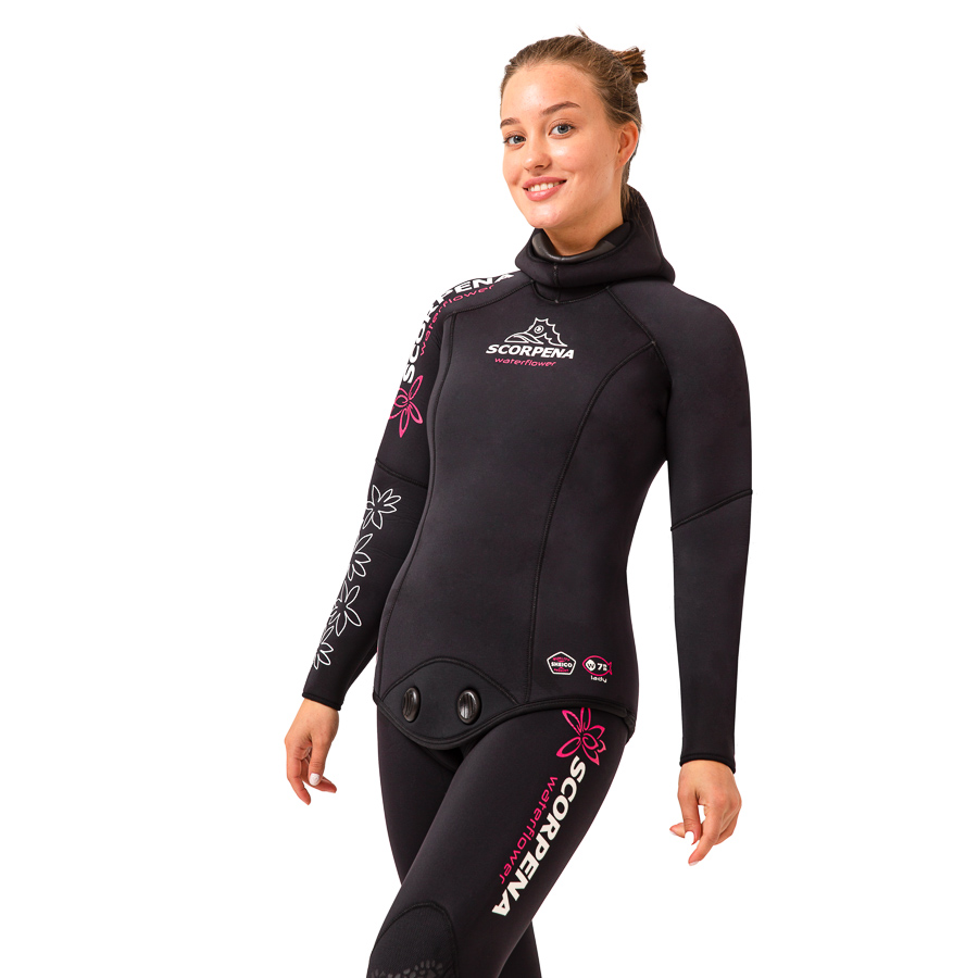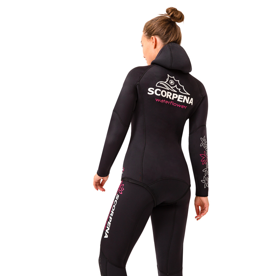 Scorpena W3 – гидрокостюм, разработанный специально для представительниц прекрасного пола. Крой костюма учитывает анатомические особенности женского тела, делая его использование наиболее комфортным. Он выполнен в приглушенном черном цвете с нежным цветочным принтом. Этот рисунок приглянулся многим охотницам не только в России, но и за рубежом.