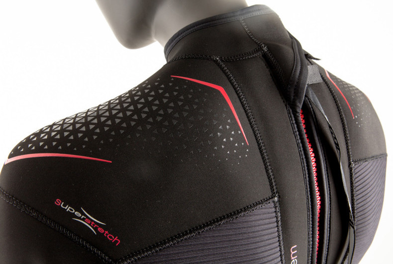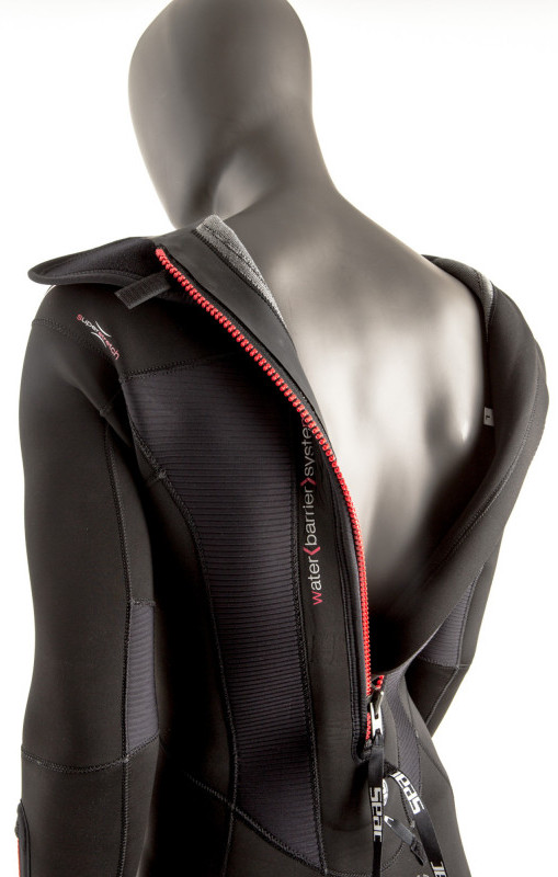 Система AQUASTOP на манжетах и щиколотках снабжена двойным неопреновым обтюратором и застежкой-молнией. Грудь и плечи, наиболее подверженные нагрузкам части костюма из-за трения снаряжения, были усилены специальными вставками с особым геометрическим рисунком.