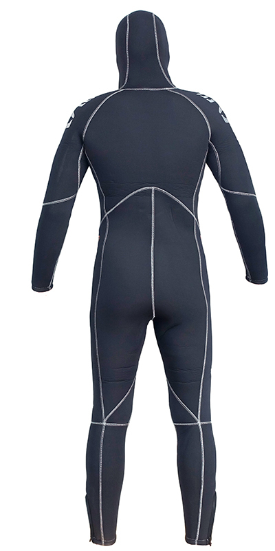 Специальная молния с ватерстопом на спине дополнительно предохраняет дайвера от холодной воды.