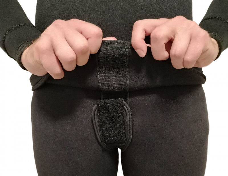 В завершение, куртка крепко фиксируется в паху с помощью мощной липучки (велкро), а все края костюма отделаны эластичной лентой. Это не только добавляет эстетичный вид, но и предохраняет от истирания, что важно для длительного использования.
