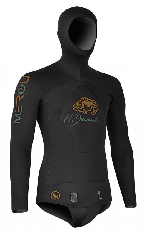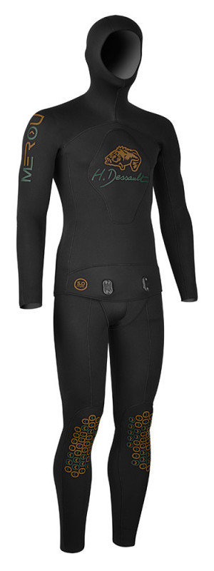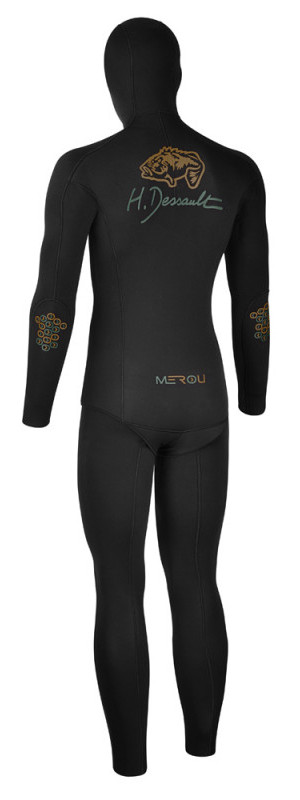 Куртка гидрокостюма H.DESSAULT MEROU BLACK имеет усиление на груди для большей защиты во время заряжения ружья, локти гидрокостюма усилены. Колени и голени штанов защищены усиленными накладками, которые защищают ноги подводного охотника от острых камней и кораллов, и продлевают срок жизни гидрокостюма.
