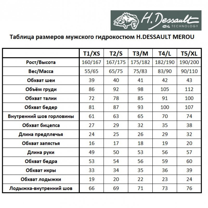 Гидрокостюм H.DESSAULT MEROU BLACK выпускается в двух вариантах толщины: 5.0 мм и 7.0 мм и в пяти размерах: Т1/XS, T2/S, T3/M, T4/L, T5/XL.