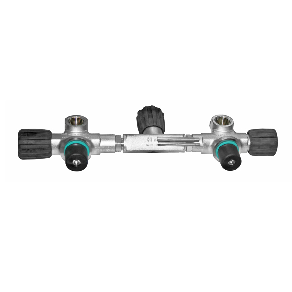 Манифолд позволяет соединить два баллона и расходовать смесь из обоих баллонов равномерно, а так же быстро изолировать неисправный баллон при нештатной работе. Рабочее давление 230 BAR. Ручка вентиля выполнена из мягкой резины, способной гасить удар при падении баллона, а так же позволяет легко открутить/закрутить вентиль даже в самых толстых перчатках. Возможно использование как с кислородом, так и с воздухом. Подходит для баллонов 11,1 л. с диаметром 186мм.