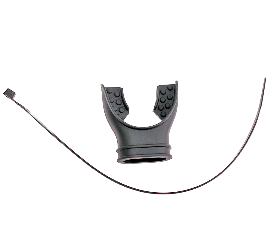 Стандартный силиконовый загубник для регулятора. В комплекте хомутик для крепления.