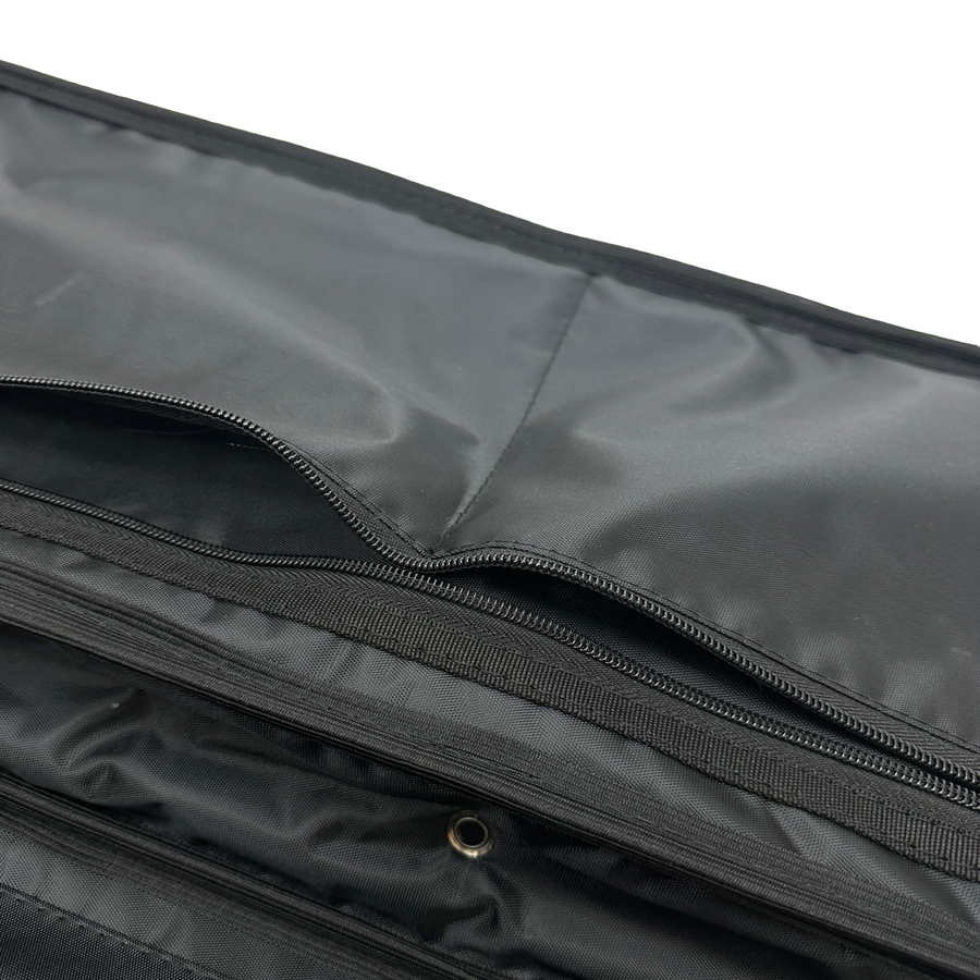 Чехол изготовлен из прочного износостойкого материала с толстыми мягкими стенками, он сохраняет форму и защищает при ударах. По периметру расположена длинная молния с двумя бегунками для полного раскрытия и удобного доступа к содержимому.