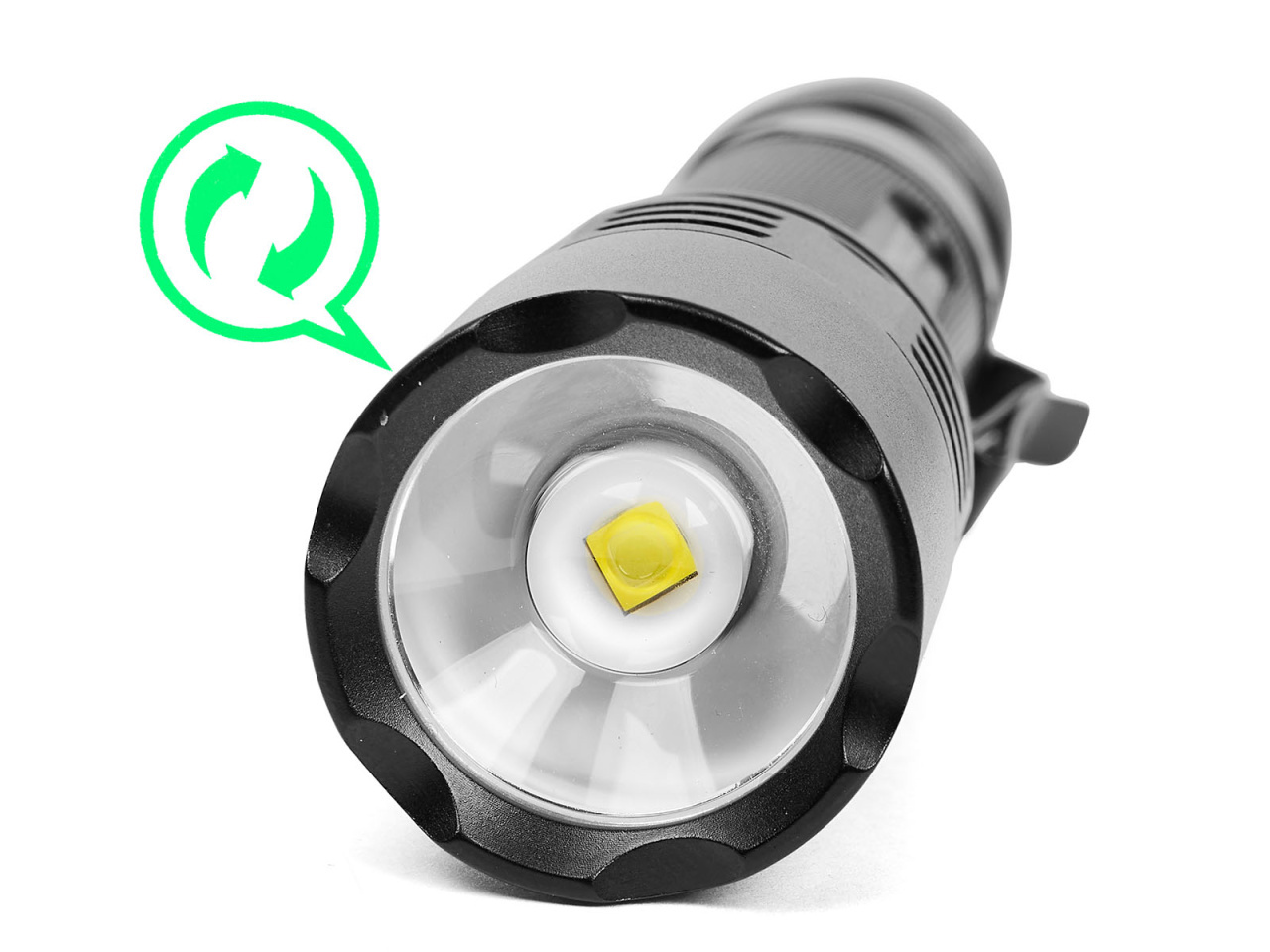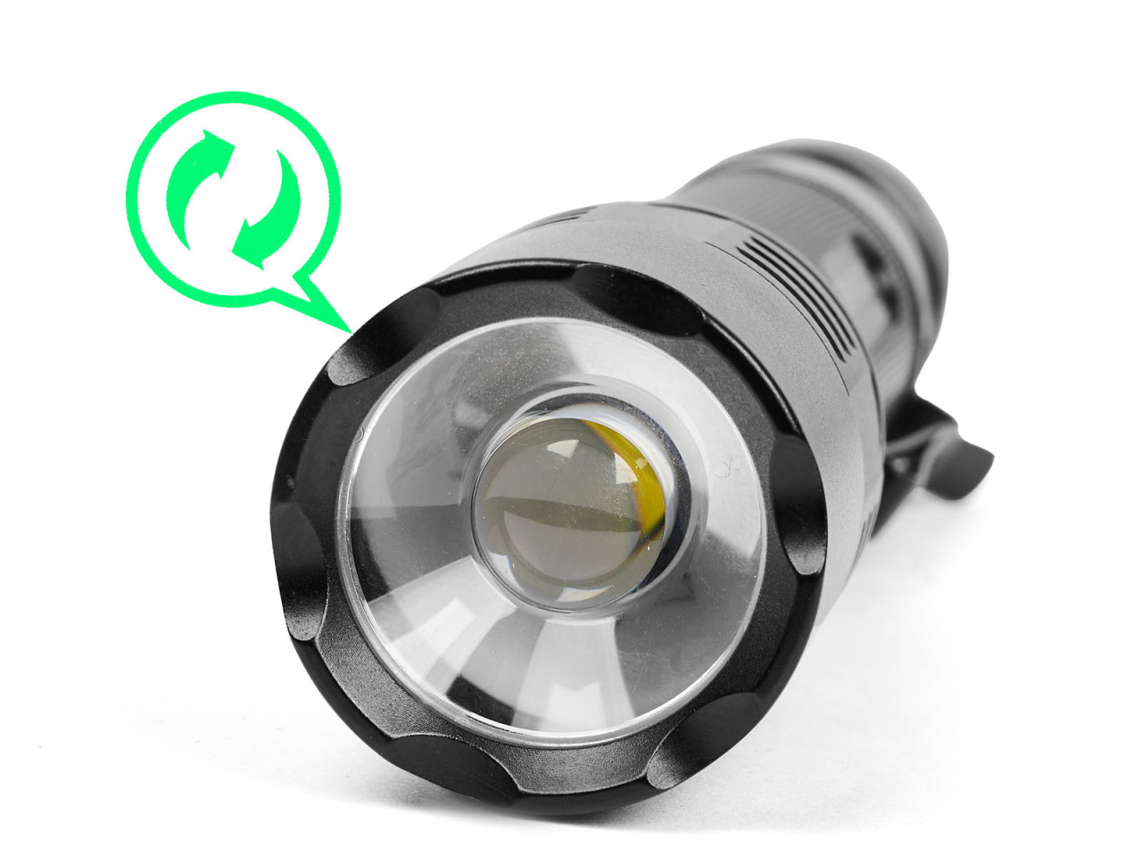 - Специальная каплевидная линза обеспечивает мягкий и ровный свет. Фонарь оснащен линзой с каплевидным расширением в центре и глянцевым алюминиевым рефлектором, что в сочетании с ослепительно белой подложкой диода дает ровный и приятный свет, даже при эксплуатации ЗУМ-фокусировки.