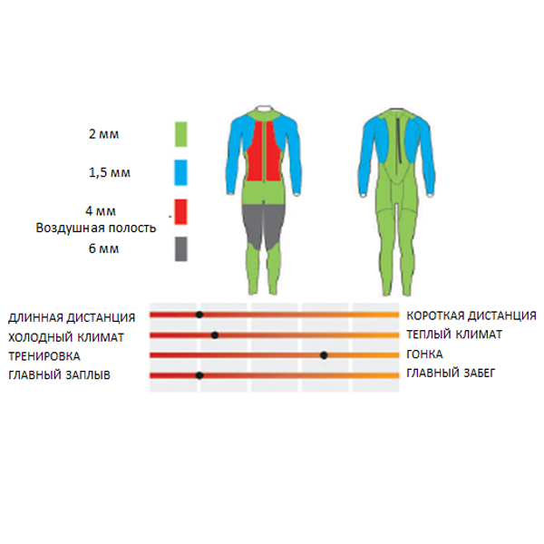 Гидроостюм для соревнований на длинную дистанцию, обеспечивающий максимальную плавучесть.