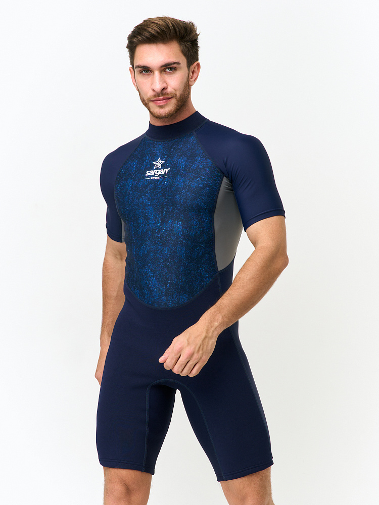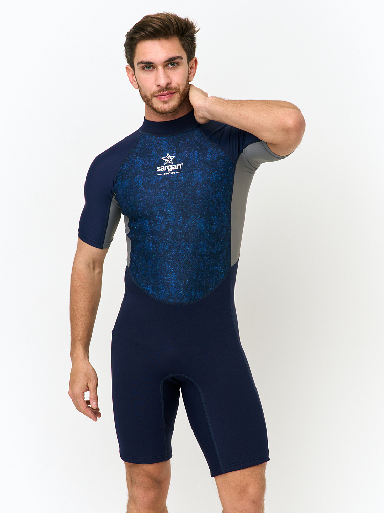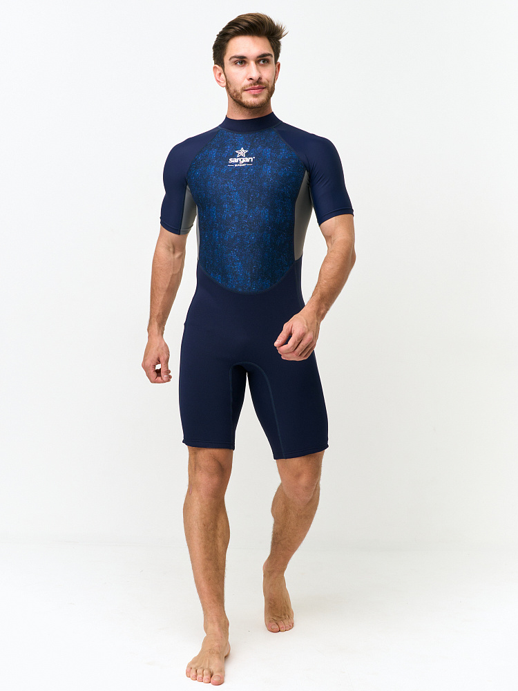 Гидрокостюм SARGAN Sport 1070BL, мужск. короткий неопрен 2мм /лайкра, синий – синий микс