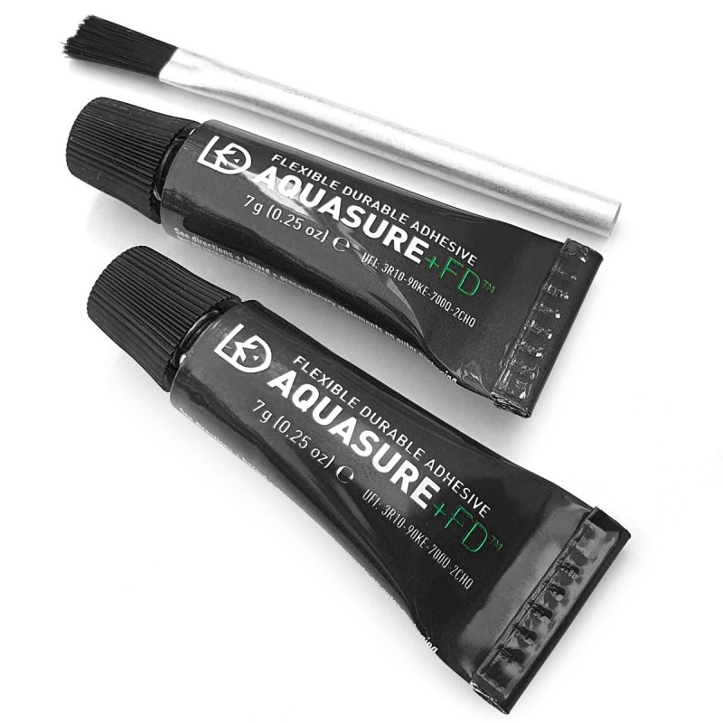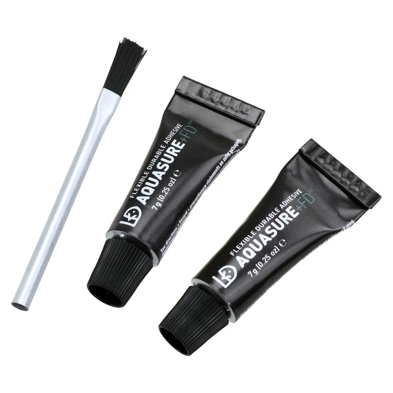 Aquasure от известного производителя McNett. Версия с двумя удобными небольшими тюбиками по 7 грамм каждый и кисточкой, которой удобно наносить клей. Клей поставляется в упаковке нового или старого образца, что никак не влияет на его содержимые и свойства.