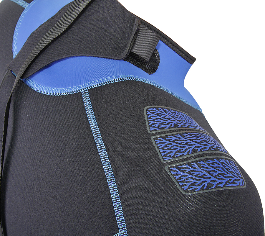 - Более эластичный неопрен на рукавах, плечах и подмышками.