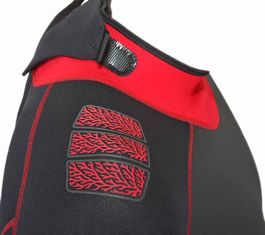 - Более эластичный неопрен на рукавах, плечах и подмышками.