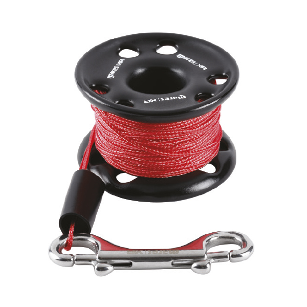Пальцевая катушка (шпуля) Mares XR выполнена из алюминиевого сплава T6061 (легкого сплава повышенной прочности, используемого в авиации, яхтинге и изготовлении баллонов для дайвинга) и снабжена двухсторонним карабинов из нержавеющей стали. Внутренний диаметр отверстия шпули увеличен по сравнению со стандартными шпулями для работы в сухих перчатках. Выгнутый край способствует удобному хвату при работе с катушкой. Шпули различных размеров отличаются по цвету. Доступные размеры 15, 30 и 45 метров. Размер катушки позволяет разместить линь большей длины, таким образом, катушка не перегружается при ручной смотке под водой.