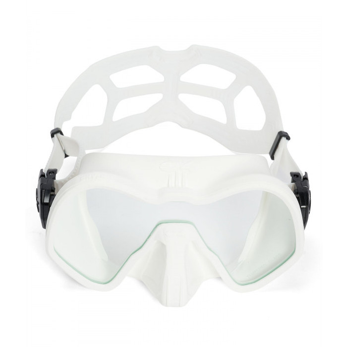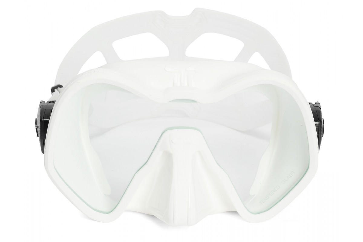 Маска C4 SKYLINE ANTIFOG моностекольная и безрамочная, стекла впрессованы в обтюратор и расположены максимально близко к глазам. Это модель имеет средний подмасочный объем, что позволяет снизить компенсационные усилия и сделать погружение более комфортным.