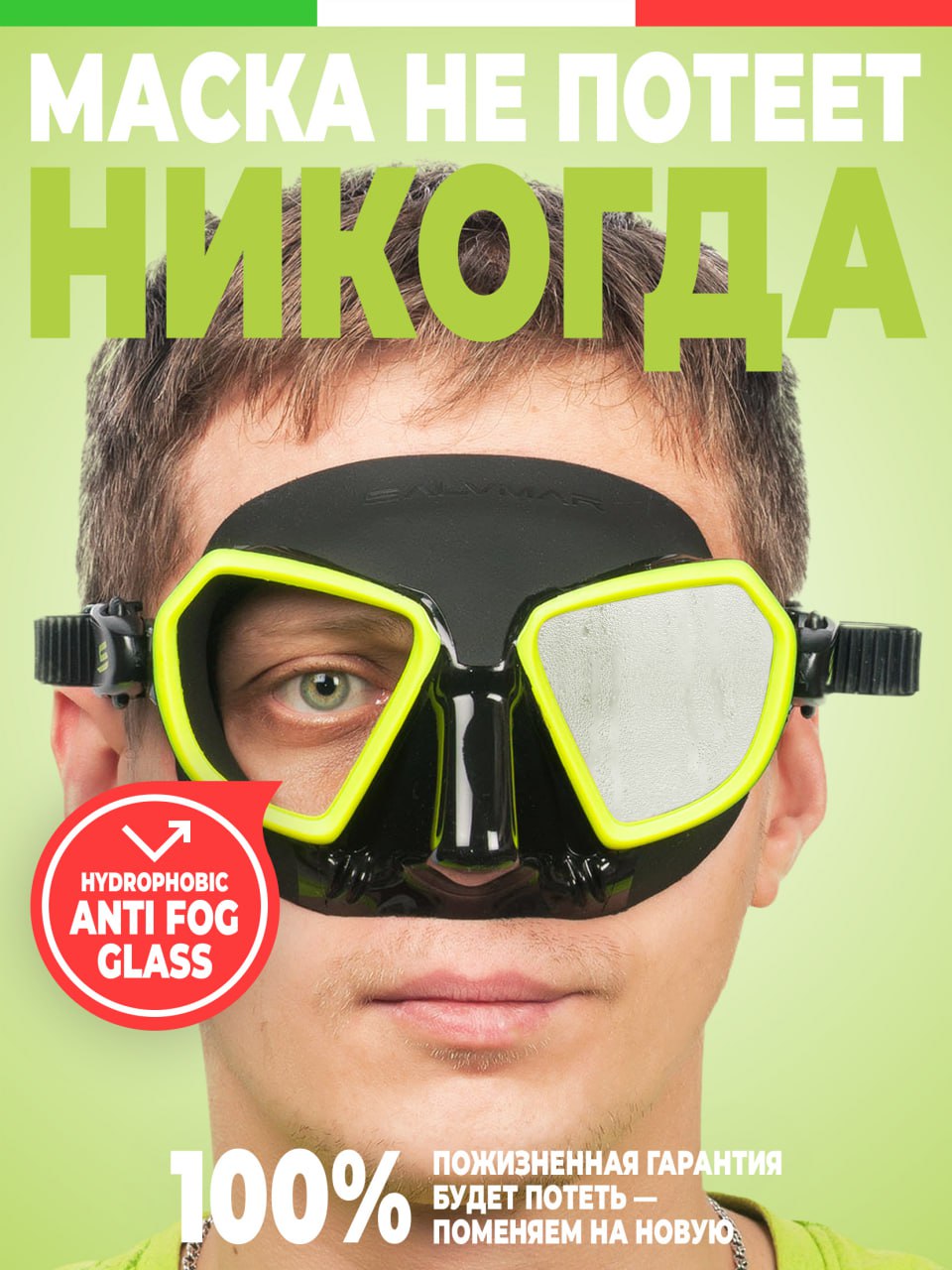 В этой модели маски применено новейшее инновационное запатентованное компанией Salvimar покрытие внутренней части линзы с «антифог» эффектом. За счет данной технологии маска не потеет вообще никогда.