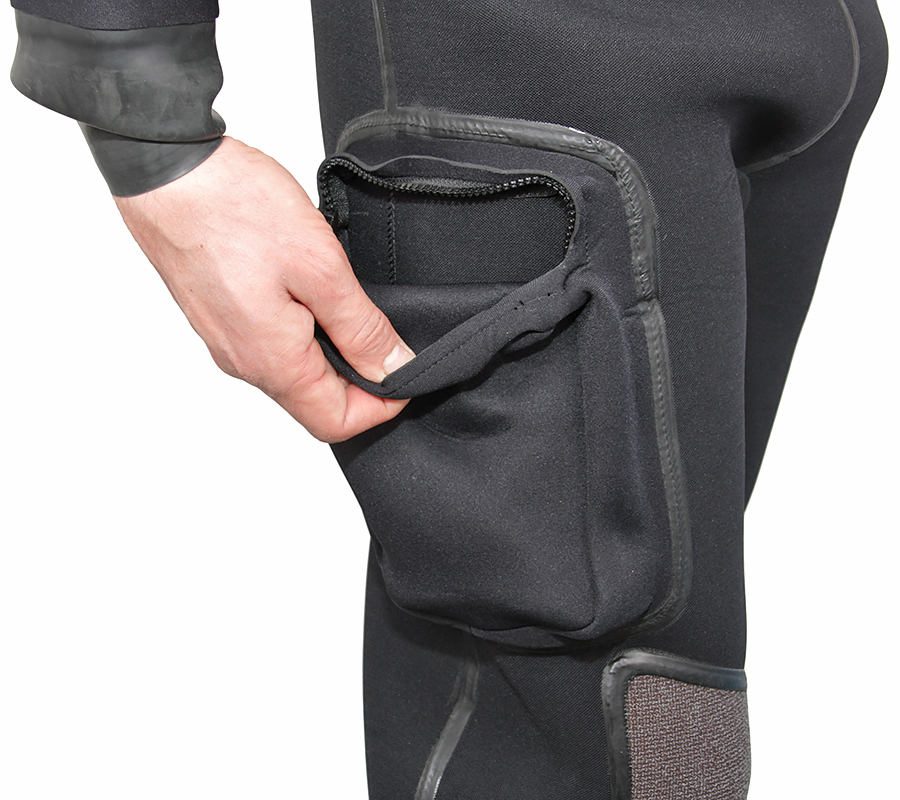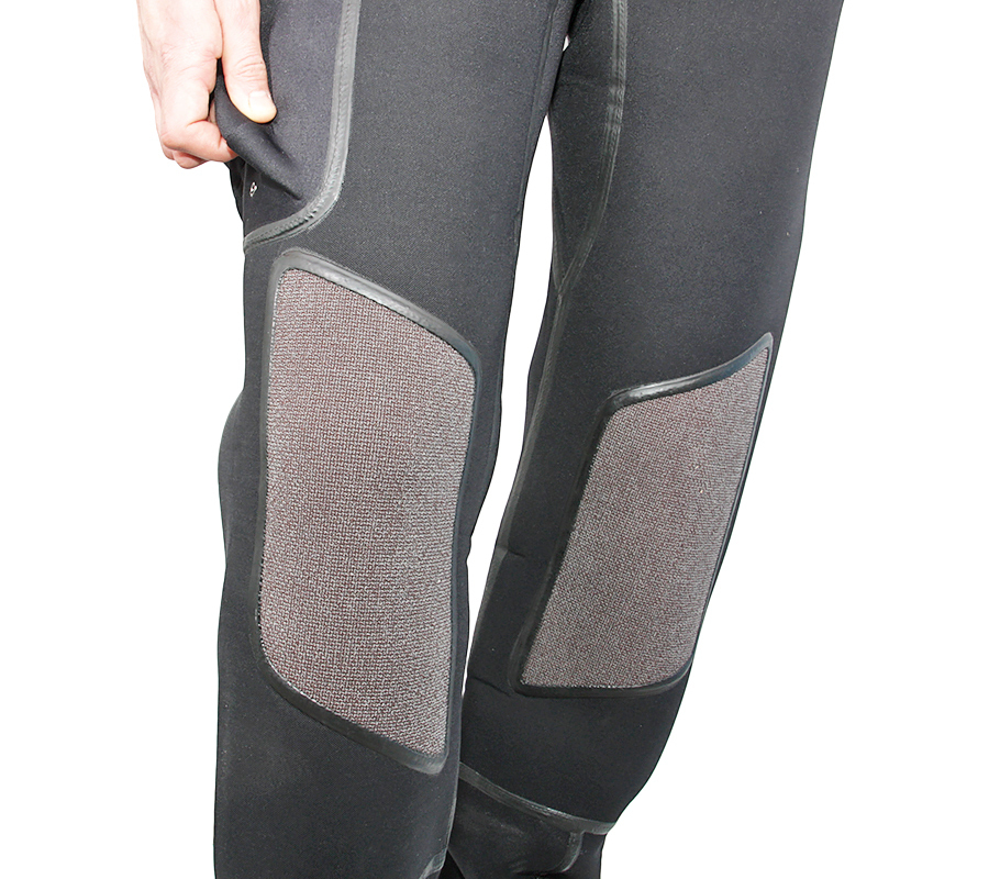 Модель снабжена вклеенными ботами 5 мм, подтяжками, карманом на бедре и усиленными кевларовыми наколенниками. На руках и шее установлены латексные манжеты. Шейный латексный манжет закрыт неопреновым воротником на липучках с дренажным отверстием.